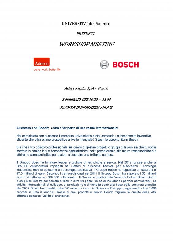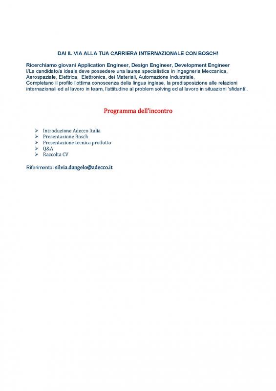 Il 3 febbraio p.v. dalle ore 10.00 alle ore 13.00 nell'aula I-3 Bosch incontra i laureati della Facoltà di Ingegneria.