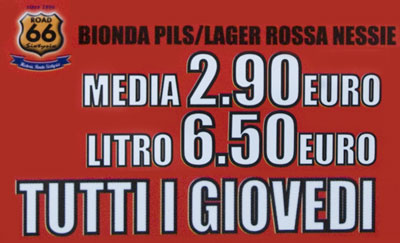 Da anni il Road Sixtysix è un punto di riferimento della Lecce by night; la sua atmosfera, la sua musica dal vivo, la cucina tipicamente TEX-MEX STEAK-HOUSE e le lunghe serate di birra spillata e bevuta a fiumi, lo hanno reso famoso in Italia e fatto segnalare dai maggiori mass-media.
