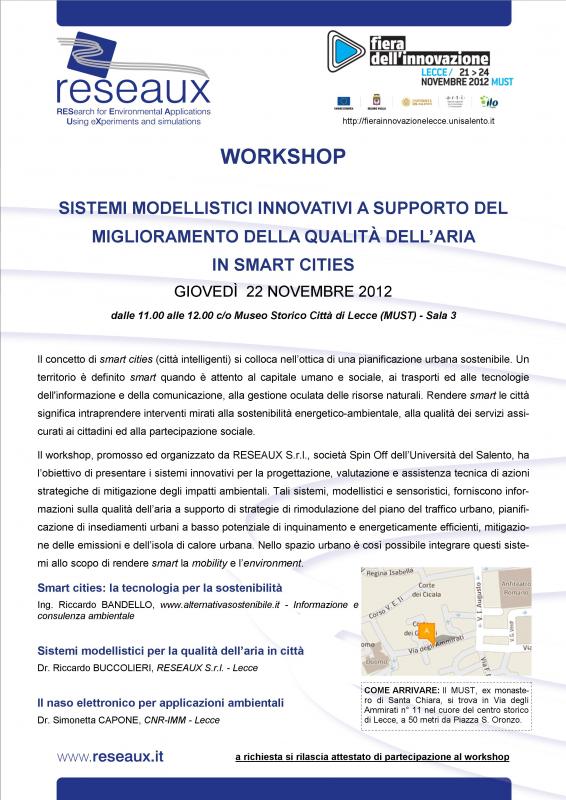 RESEAUX S.r.l. (RESearch for Environmental Applications Using eXperiments and simulations) è una società Spin Off dell’Università del Salento. RESEAUX offre consulenza ed assistenza tecnico-scientifica altamente innovative nel campo della salvaguardia ambientale, dello sviluppo sostenibile e della pianificazione del territorio.