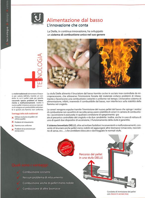 La GeG srl è sempre alla ricerca dell'innovazione e il rispetto della natura è PRESENTA LA NUOVA STUFA AD ARIA DIELLE. La stufa Dielle alimenta il bruciatore dal basso tramite coclee in acciaio controllate da microprocessore, che attraverso l'immissione forzata del materiale evitano problemi di intasamento e favoriscono una combustione costante e uniforme nel tempo.L'innovativo sistema di alimentazione, infatti, inserendo il combustibile dal basso, non interferisce sulla stabilità della fiamma del crogiolo.