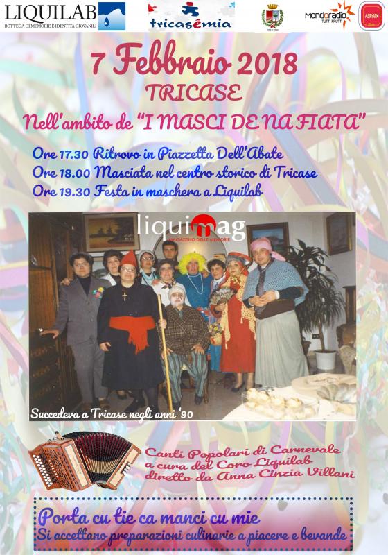 Ritrovo ore 17.30 in Piazzetta Dell'Abate e ore 19.30 festa mascherata a Liquilab