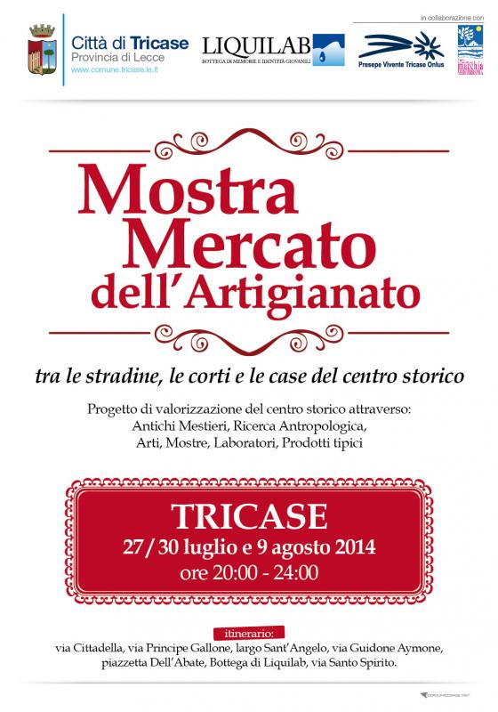 Nel cuore della Città di Tricase, tra chianche, strittule e le case a corte... gli antichi mestieri, la ricerca antropologica, le arti, i laboratori e i prodotti tipici si intrecceranno per dar vita alla MOSTRA MERCATO DELL’ARTIGIANATO dal 27 al 30 Luglio e il 9 Agosto, ore 20:00 – 24:00.