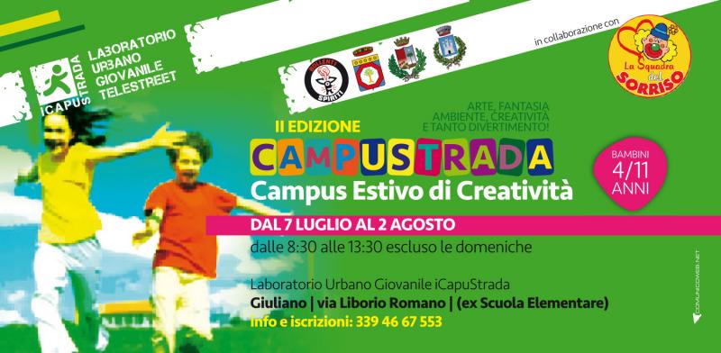 caMpustrada 2014... Un progetto pedagogico integrato di gioco, educazione, animazione, arte, ambiente... Un luogo d'identità e di alterità... dove il bambino ricerca/sperimenta attraverso la semplicità del gioco momenti di aggregazione, socializzazione, fantasia, crescita..... Dal 10 giugno a Tricase e dal 7 luglio a Giuliano ancora INSIEME per un'altra entusiasmante avventura...
