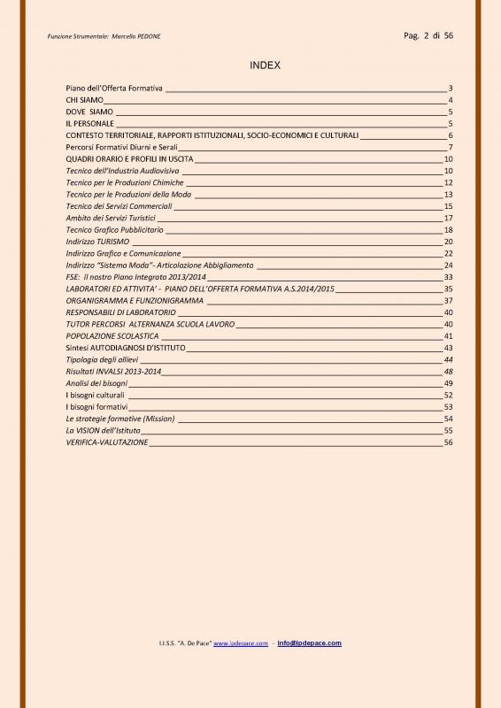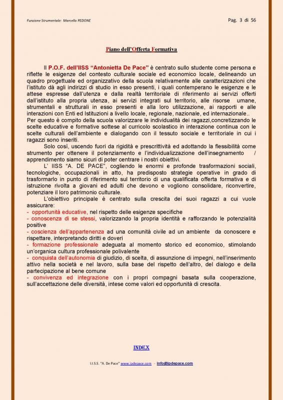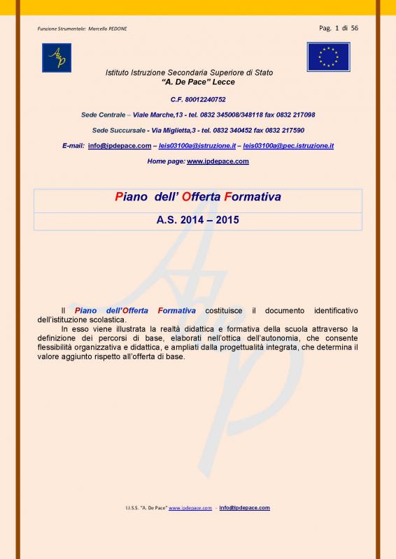 Pubblicato sul nostro sito web scolastico www.ipdepace.com il Piano dell'Offerta Formativa per l'A.S. 2014/2015