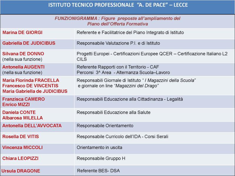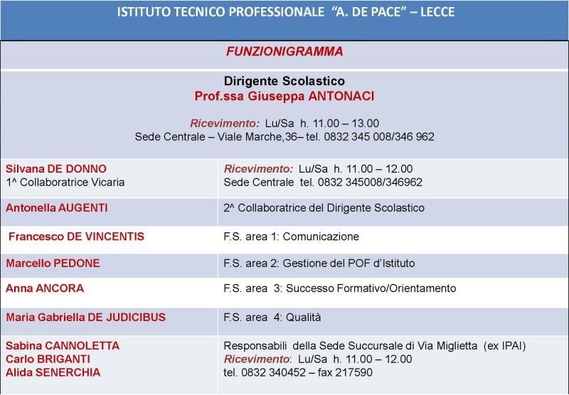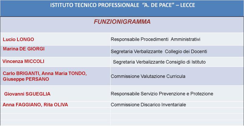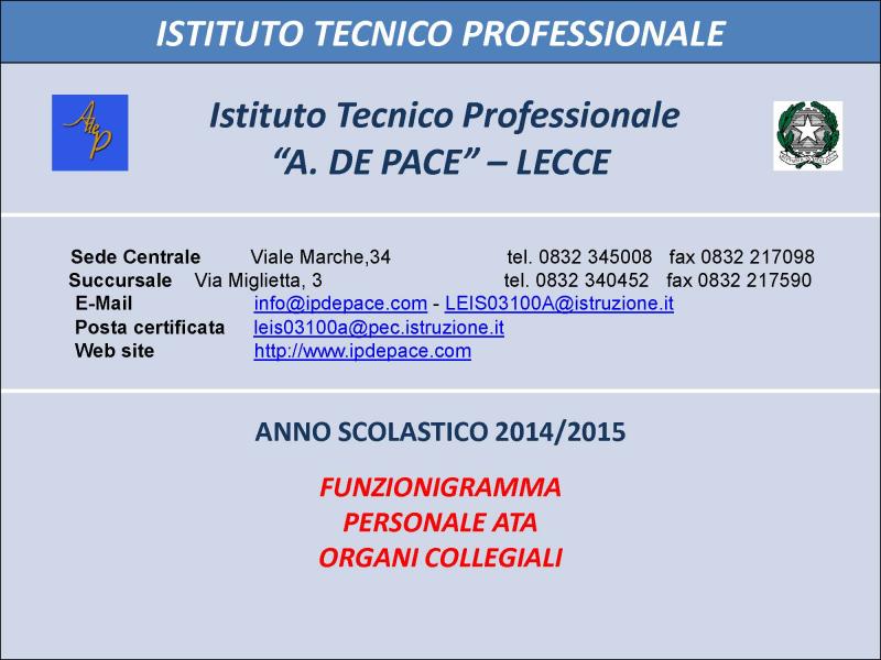 Pubblicato sul nuovo sito scolastico www.ipdepace.com il Funzionigramma per l'a.s. 2014/2015.