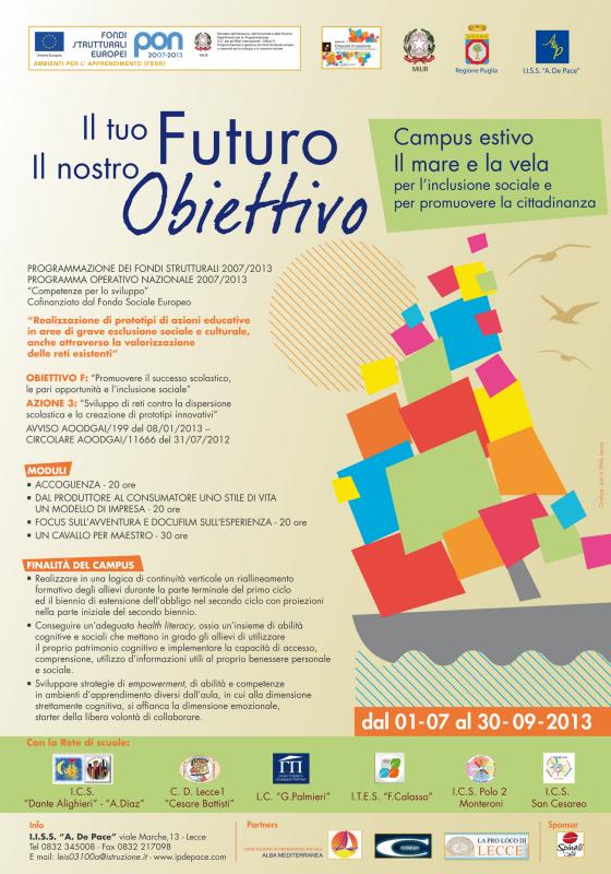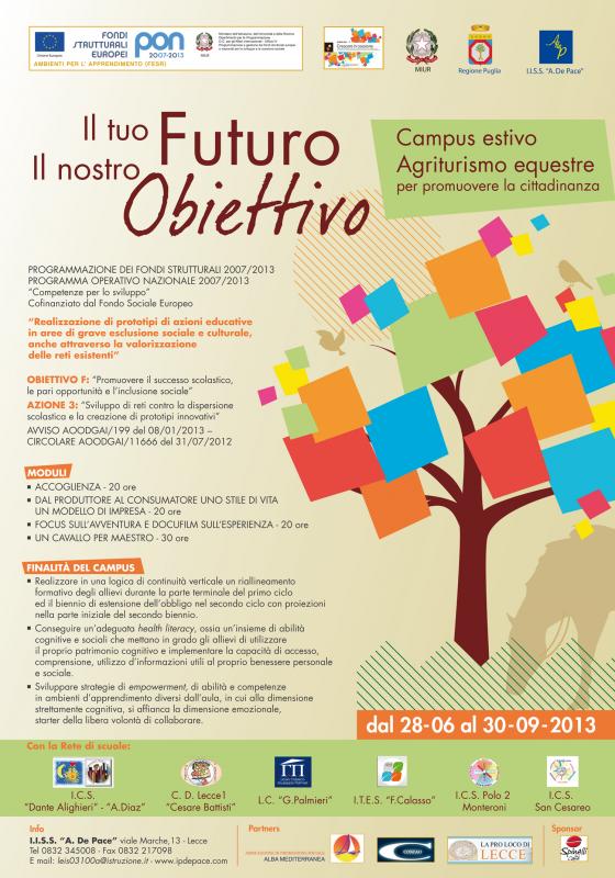 Campus estivo Agriturismo equestre dal 28 giugno al 30 settembre 2013 Campus estivo Il Mare e la Vela dal 1 luglio al 30 settembre 2013 Per Info: tel. 0832345008 - fax 0832217098 email: leis03100a@istruzione.it sito web: www.ipdepace.com