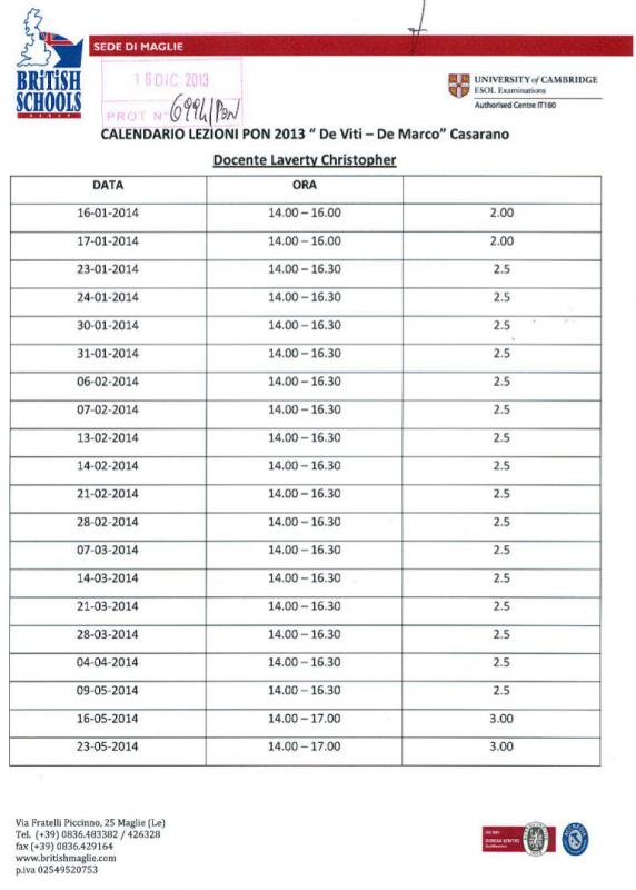 Il calendario ufficiale delle lezioni del PON di INGLESE!