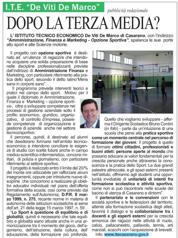L'ISTITUTO TECNICO ECONOMICO De Viti De Marco di Casarano, con l'indirizzo "Amministrazione Finanza e Marketing - Opzione Sportiva", spalanca le sue porte allo sport e alle Scienze motorie.