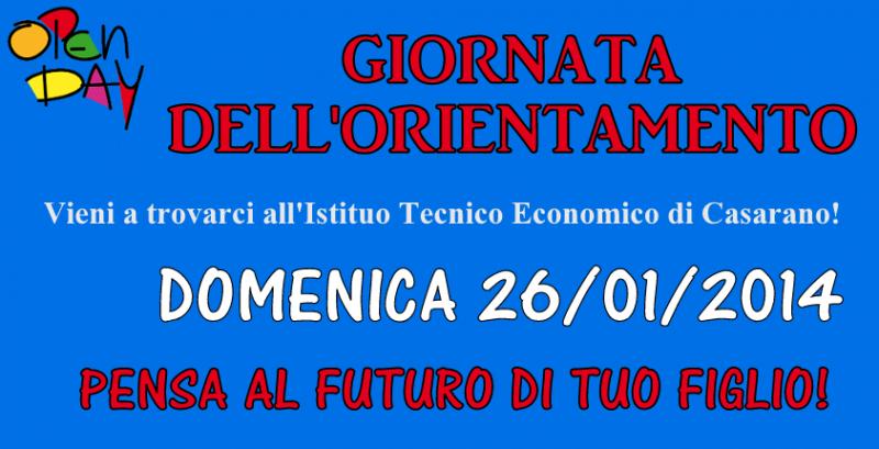 Presentazione degli indirizzi “Amministrazione Finanza e Marketing” e “Turismo”. Visita ai laboratori e alle aule speciali. Orario: 9:30 - 12:30 / 16:00 - 18:30 I genitori impossibilitati ad intervenire possono prenotare una visita telefonando all’Ufficio alunni 0833/504014. - Maggiori info: http://www.itecasarano.gov.it