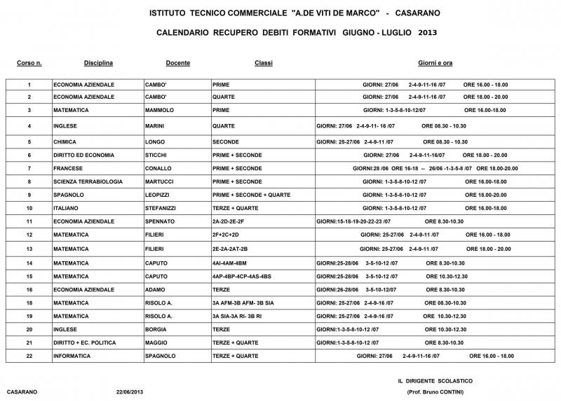 Pubblicato all'interno del nostro portale Istituzionale il calendario dei corsi di recupero con la relativa comunicazione del Dirigente Scolastico. Per maggiori dettagli: http://goo.gl/XRRNm