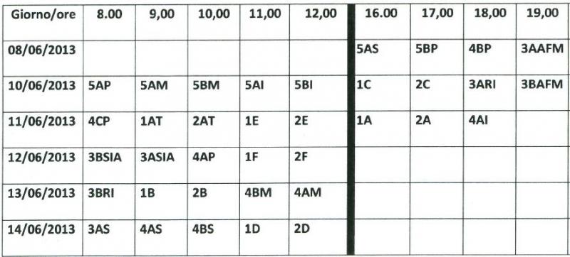L'Istituto organizzerà interventi integrativi in orario antipomeridiano e pomeridiano dal 24/6 al 20/7/13 nel rispetto del calendario che sarà affisso all'alba della scuola entro il 22/06/13. I genitori che per vari motivi, non intendono avvalersi delle iniziative di recupero sono invitati a darne comunicazione formale, in segreteria alunni, entro il 19/06/13. E' necessario, comunque, che l'alunno si applichi con impegno e buona volontà per colmare anche con lo studio individuale le proprie lacune. Nella prima settimana di Settembre l'alunno sarà sottoposto a verifiche nel rispetto delle modalità indicate dai docenti che sarà esposto all'albo entro il 30 Agosto 2013. Solo nel caso di esito positivo delle verifiche, a giudizio del Consiglio di classe, l'alunno sarà ammesso alla frequenza della classe successiva.