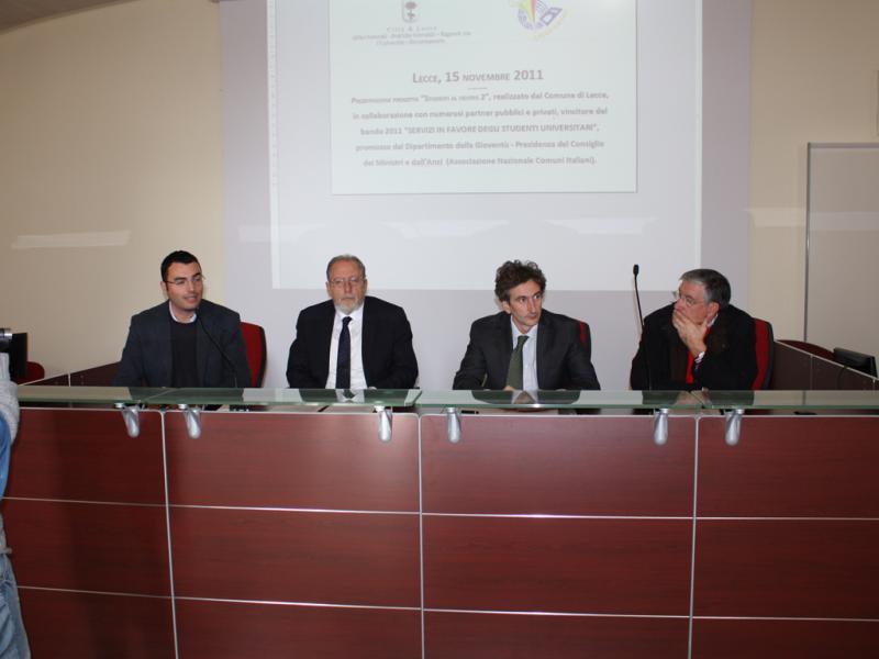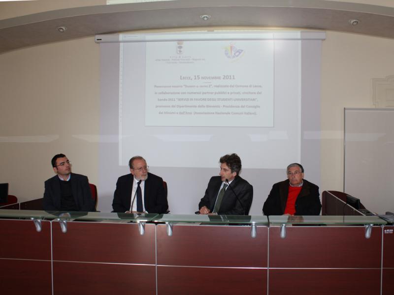 Studenti al Centro 2 è la prosecuzione di Studenti al Centro, realizzato dal Comune di Lecce e dall'Università del Salento nel 2009-2010 grazie al cofinanziamento del Ministero della Gioventù e dell'ANCI. L'obiettivo è quello di sviluppare ed implementare sul territorio cittadino interventi e servizi finalizzati alla fascia giovanile compresa quella degli studenti universitari che vivono sul terrirorio salentino. In campo un vero e proprio partenariato composto da Università del Salento, Adisu Puglia, SGM, Officine Cantelmo-Lecce Città Universitaria, Cooperativa Cool Club, InCima srl, Ingegnart sas, La Sveglia, Progetto Universitas, Obiettivo Studenti e Udu.
