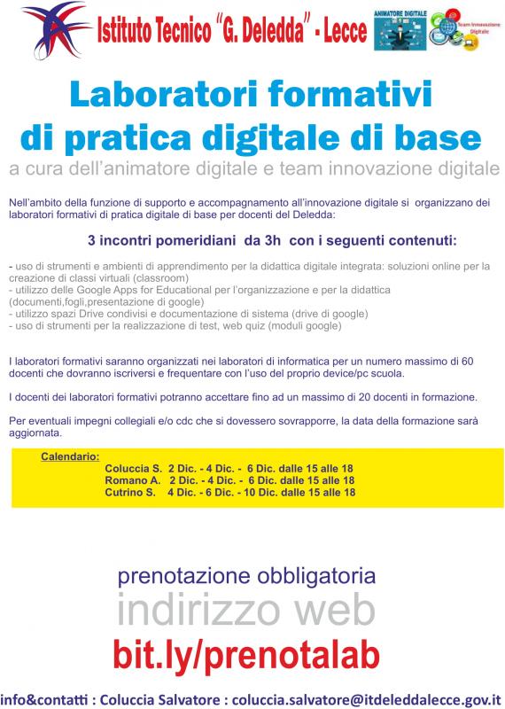 Nell’ambito della funzione di supporto e accompagnamento all’innovazione digitale si organizzano dei laboratori formativi di pratica digitale di base per docenti del Deledda: