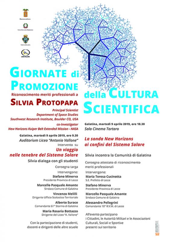Martedì 9 aprile, alle ore 9:30, nell’auditorium del nostro Liceo ospiteremo Silvia Protopapa – giovane Astrofisica galatinese di rilievo internazionale e principale ricercatrice presso il Dipartimento di Studi Spaziali del prestigioso Istituto di Ricerca in Boulder nello Stato del Colorado (USA), nonché co-Investigator della missione spaziale New Horizons Kuiper Belt Extended Mission della NASA.