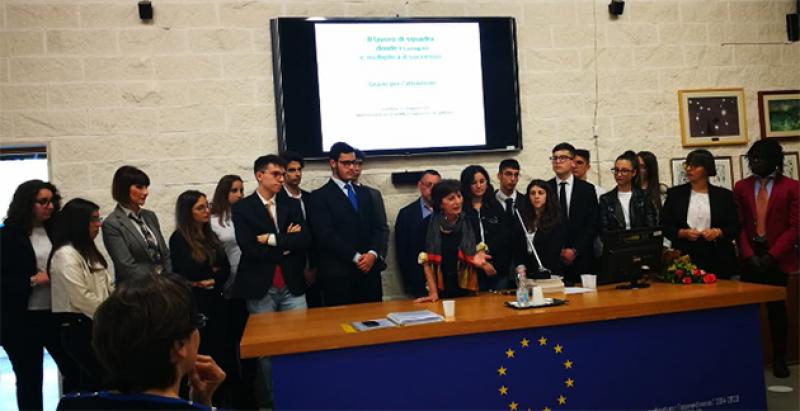 Presente alla cerimonia lo studente Pierantonio Mauro, in rappresentanza della classe 5^E che, con un copione teatrale dal titolo “La Divina Europa”, ha guadagnato il secondo posto tra i vincitori.