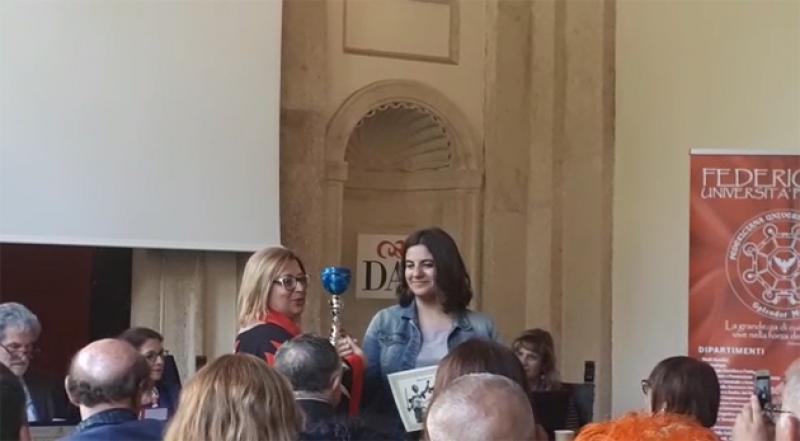 È stata premiata oggi – 31 maggio 2019, a Roma, dalla Presidente della Società Dante Alighieri, la studentessa Benedetta Bello della classe 3^D del nostro Liceo.