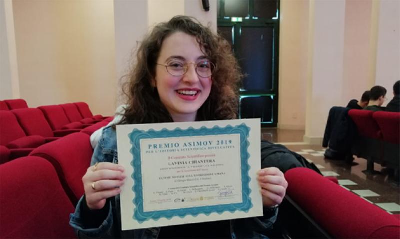 Il Premio Asimov vede in competizione, non solo gli autori dei libri in concorso, ma anche i ragazzi che hanno recensito le loro opere e, tra le quindici migliori recensioni, i cui autori vincono un viaggio premio al Gran Sasso Science Institute, con sede a L’Aquila, c’è quella della studentessa Lavinia Chiantera della classe 4^A.