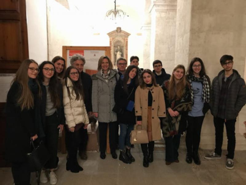 Sabato 18 novembre tutte le classi del Liceo Classico, divise in due turni, hanno assistito presso l'Auditorium “Madonna della Rosa” alla rappresentazione teatrale "Conoscere don Tonino”. Un titolo che ne individua anche l’obiettivo: presentare l’uomo, il vescovo, il teologo, il pastore, il pacifista, colui che è sempre stato dalla parte dei poveri e degli ultimi, a ragazzi che non l’hanno conosciuto, a cui può appunto essere raccontato, ma che non ne avranno mai l’impronta del contatto diretto. Una performance voluta dall’Associazione Orchestra “Saverio Mercadante” che, insolitamente, ha messo insieme più arti per dire don Tonino. La musica suonata dal vivo, le voci narranti, potente quella di Sebastiano Somma che ha dato vita a pagine scritte dal vescovo di Molfetta, e particolarissima la sand art di Stefania Bruno, che ha creato da un pugno di sabbia molti mondi, in sintonia con quel che si andava narrando.