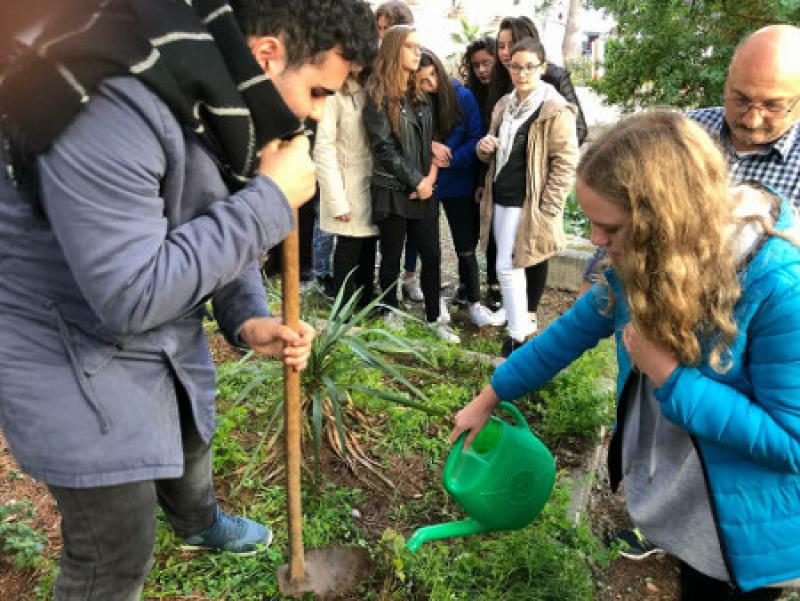 È toccato ai piccoli delle quarte ginnasiali mettere a dimora nel giardino del Liceo Classico alcune giovani piantine, fornite dal Comune di Molfetta in occasione della Festa dell’alberO, 21 novembre. Si rinnova, quindi, l’adesione all’iniziativa promossa da Legambiente al fine di promuovere l’importanza del verde per contrastare le emissioni di CO2, l’inquinamento dell’aria, prevenire il rischio idrogeologico e la perdita di biodiversità. Quest’anno il motto scelto è “Il futuro non si brucia!”, con il quale l’associazione ambientalista intende porre l’attenzione sul contrasto agli incendi. Al Classico la piantumazione è stata accompagnata da un momento di riflessione e dalla lettura di brani e poesie a tema. Docente referente: prof.ssa Mara Zaza