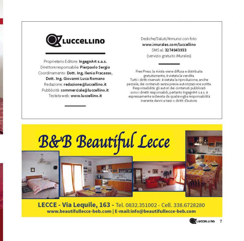 Da oggi Luccellino è realtà... la rivista gratuita che potete trovare nelle principali attività di Lecce e Provincia e nei 150 punti convenzionati. 56 pagine con rubriche ricche di contenuto a cura dei nostri partner e lo speciale Feste Natalizie con ricette e Oroscopo 2016!