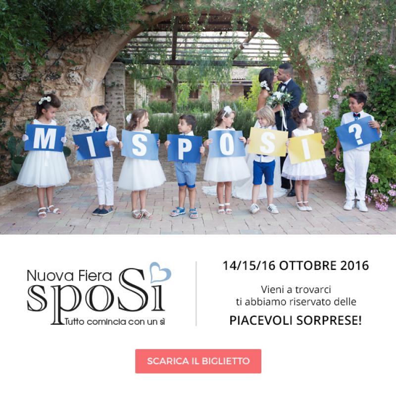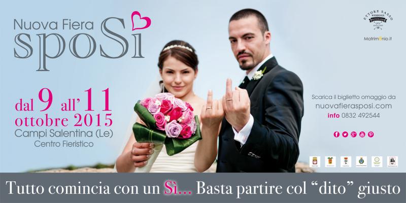 Si terrà dal 14 al 16 ottobre 2016 presso il Centro Fieristico di Campi Salentina (LE) l'VIII Edizione di Nuova Fiera Sposi, l'esclusiva manifestazione grazie alla quale i futuri sposi potranno organizzare al meglio il loro matrimonio, presentando in anticipo le novità sul wedding 2017! SCARICA IL BIGLIETTO D'INGRESSO OMAGGIO SU WWW.NUOVAFIERASPOSI.COM