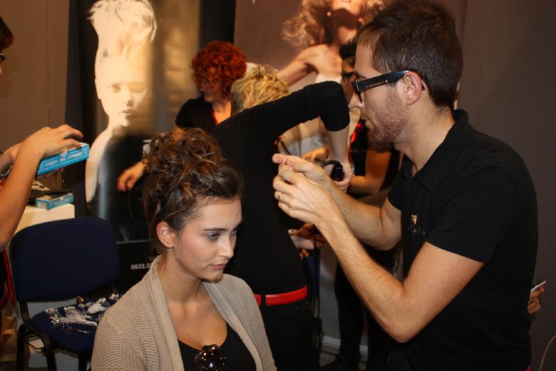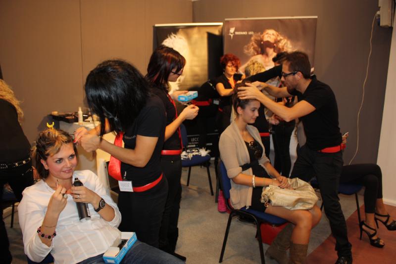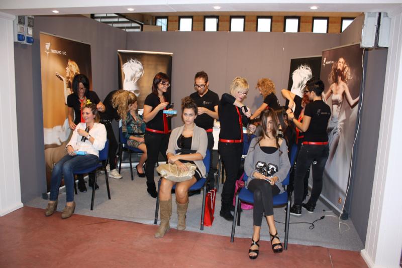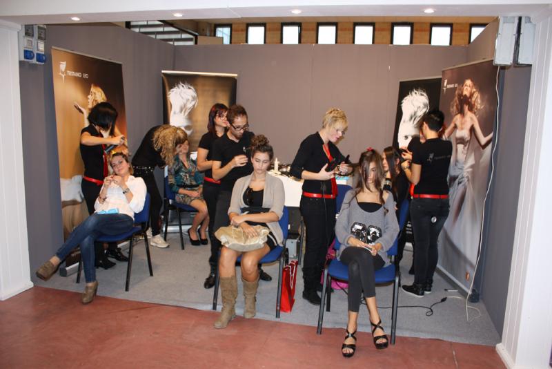 Le candidate per il nuovo volto della campagna di comunicazione della Nuova Fiera Sposi si preparano per la sfilata delle 19.30 dove in passerella verranno presentate le collezioni 2013 delle Maison in fiera. Le acconciature delle modelle sono un'esclusiva di Tristano Leo, realizzate nel suo spazio durante l'evento in fiera "hair & make-up styling".