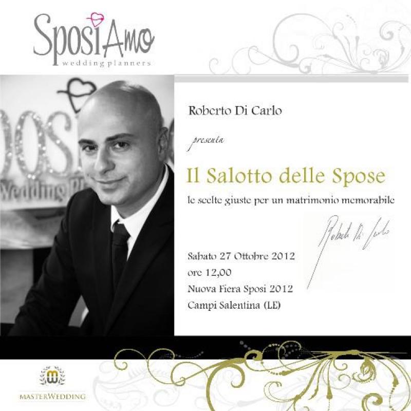 Giornata ricca di eventi sin dal mattino oggi in Fiera a Campi Salentina. 10.30: Stage MasterWedding “Le regole d’oro per un matrimonio perfetto” a cura di Roberto di Carlo 12.00: Il Salotto delle Spose: le scelte giuste per un matrimonio memorabile e per finire nel pomeriggio due appuntamenti ai quali non rinunciare: 18.00: Show Cooking - realizzazione della torta ispirata alla splendida Belen Rodriguez a cura del maestro pasticcere Angelo Bisconti 19.30: Sfilata in passerella di abiti da sposa e sposo, a cura di Massimo Orsini, nel corso della quale sarà scelto un volto nuovo per la prossima campagna pubblicitaria Vieni a visitare i nostri stand, e scopri le sorprese a te riservate! Ti aspettiamo...