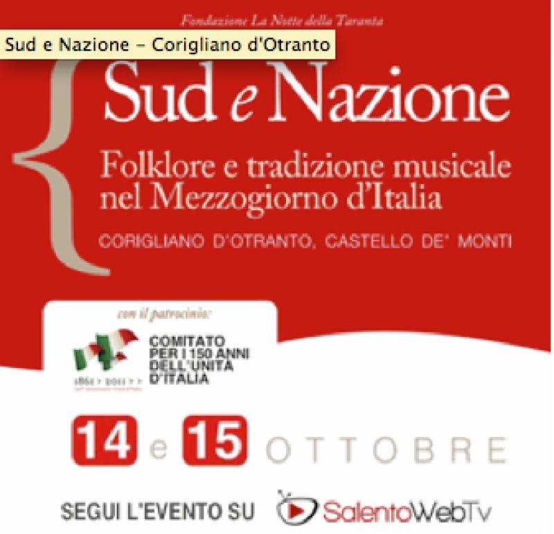 Venerdì 14 e sabato 15 ottobre, La Fondazione La Notte della Taranta presenta il convengo di studi dal titolo “Sud e Nazione. Folklore e tradizione musicale nel Mezzogiorno d’Italia” presso il Castello de’ Monti di Corigliano d’Otranto. Consulta il programma su questo link: http://www.salentoweb.tv/news/5677/corigliano-sud-e-nazione-folklore-e-trad