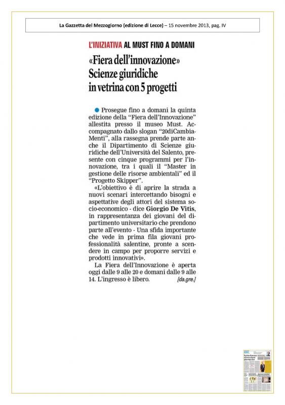 - La Gazzetta del Mezzogiorno - PugliaLive.it - Leccesette.it - CorriereSalentino.it