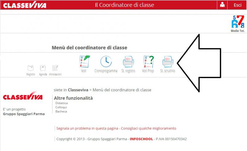 Completato lo scrutinio, i Coordinatori, per una più agevole stesura del verbale, hanno la possibilità di stampare il tabellone delle proposte di voto e quello dei voti finali attraverso l'icona "St. Scrutinio" del menu "Coordinatore di Classe" del "Registro Elettronico". Chiedano, invece, in Segreteria Didattica (Sig.ra Maria) la generazione del Verbale che integreranno, stamperanno ed allegheranno al "Registro Elettronico".