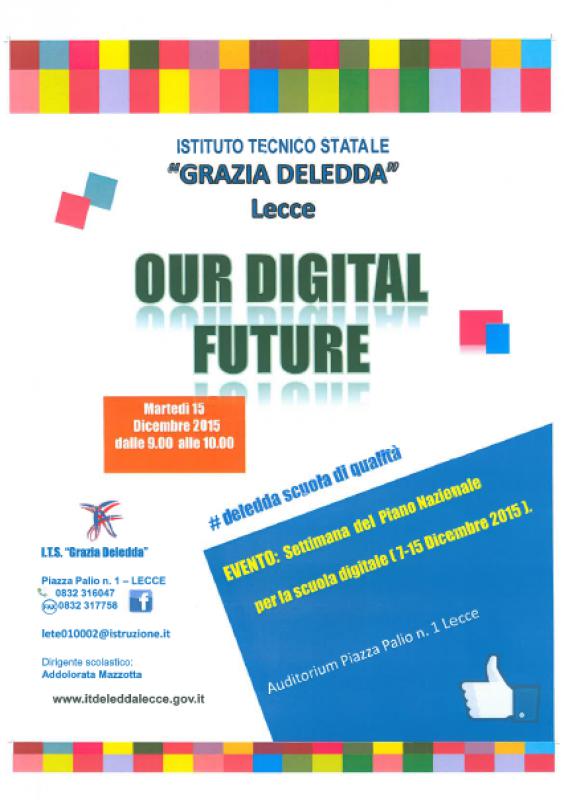 Settimana del Piano Nazionale per la scuola digitale (7-15 Dicembre 2015) Evento: OUR DIGITAL FUTURE c/o I.T. Grazia Deledda - Lecce Martedì 15.12.2015 (9.00-11.00)