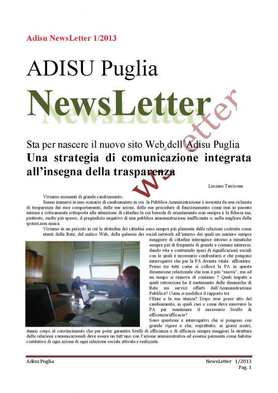 • ADISU LECCE. Disponibile la NewsLetter n. 1/2013