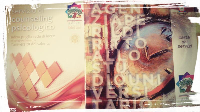 Adisu Lecce mette a disposizione la Carta dei propri servizi in un opuscolo a stampa e che sarà disponibile anche on line sul sito istituzionale. Con la Carta dei Servizi anche un pieghevole sul Servizio di Counseling Psicologico Adisu Lecce. Notizie sull'attività dell'Adisu sono in web.adisupuglia.it e in www.imurales.com.