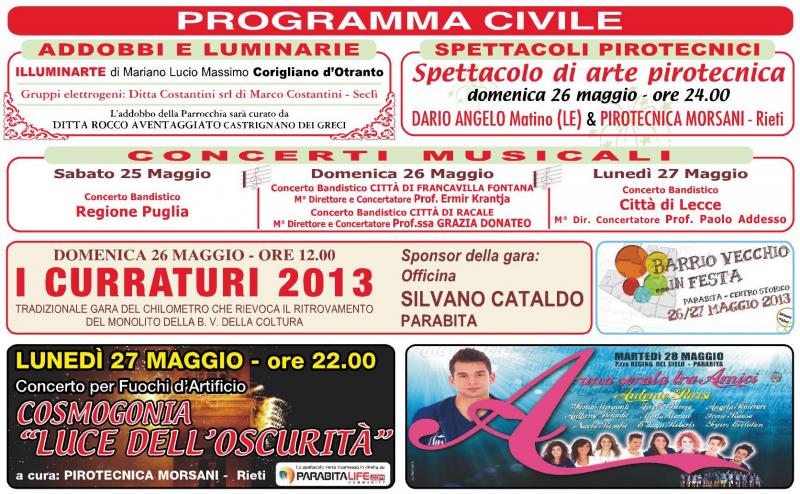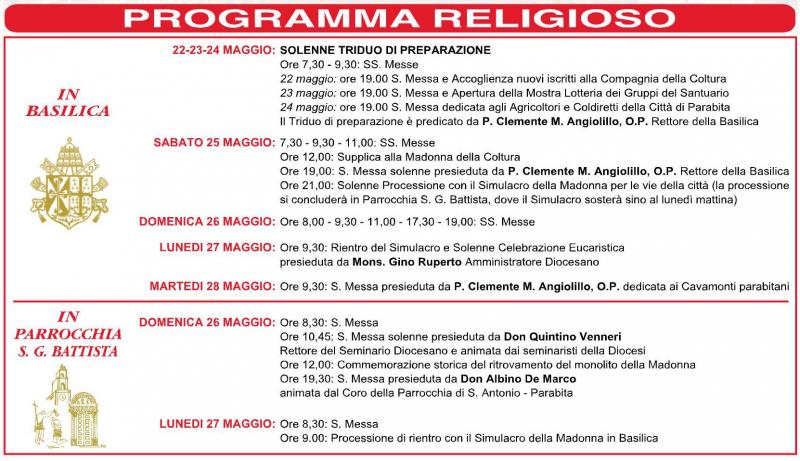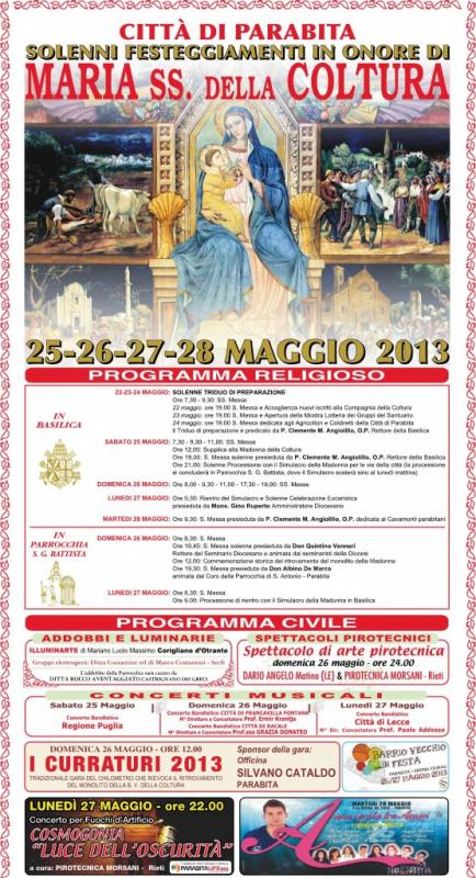 L'intero programma ufficiale dei Festeggiamenti in onore di Maria SS. della Coltura 25-26-27 maggio 2013