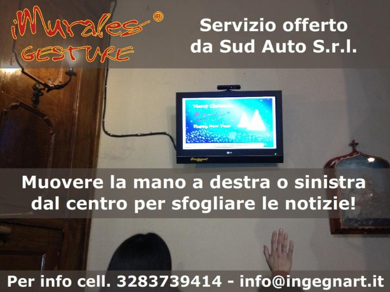 Grazie al sostegno di Sud Auto srl, IngegnArt porta la nuova Bacheca Digitale “iMurales Gesture”, sviluppata in collaborazione con l'Università del Salento, anche a Parabita (LE) in occasione dei Festeggiamenti in onore dell'amatissima Madonna della Coltura. Un maxischermo strategicamente posizionato nell’area dei festeggiamenti permetterà ai presenti di sfogliare digitalmente, con quattro semplici gesti della mano, esclusivi scatti della Festa effettuati in tempo reale. Vi aspettiamo numerosi!!! Per capirne di più guarda il video: http://youtu.be/rc97JpJvo9I Inoltre per Parabita sono attivi su iMurales due canali - il canale “Festa Maria SS. Della Coltura” - http://www.imurales.com/madonnadellacoltura - il canale per la Bacheca Digitale presente tutto l'anno nella Parrocchia di San Giovanni Battista (Chiesa Madre) - http://www.imurales.com/parrocchia-san-giovanni-battista nei quali possono essere postati, da chiunque e in tempo reale, messaggi, saluti, notizie e foto della Festa, anche via SMS al numero gratuito wind dedicato 327.1972206. Questi verranno pubblicati direttamente sulla bacheca digitale presente in Chiesa Madre oltre che sul web! Che aspettate? Il numero è già attivo e che la Festa abbia inizio... Buon divertimento!