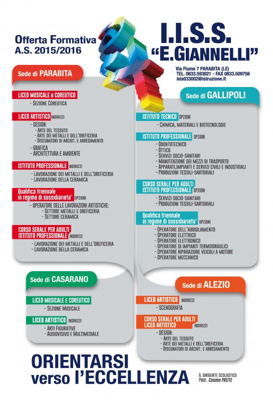 Pubblicato sul sito web scolastico l'elenco completo degli indirizzi attivi per l'OFFERTA FORMATIVA per l'A.S. 2015-2016. http://www.iissparabita.it