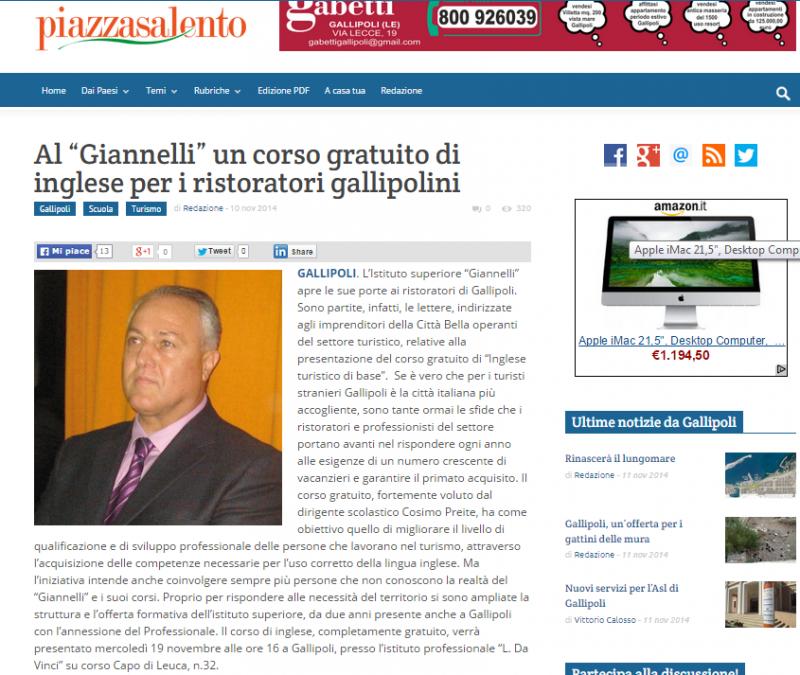 Su piazzasalento parlano di noi... ecco l'articolo che potete leggere anche sul nostro sito web scolastico iissparabita.it dal titolo: "Al “Giannelli” un corso gratuito di inglese per i ristoratori gallipolini"