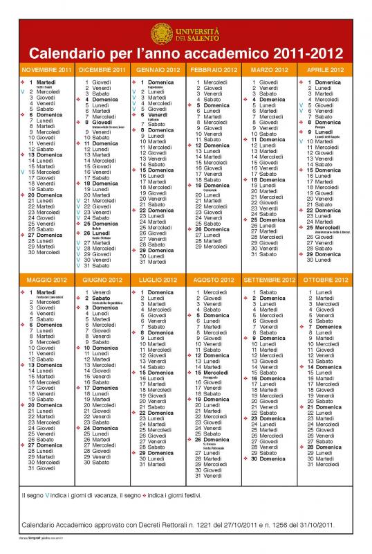 E' possibile visualizzare il Calendario Accademico a.a. 2011/2012, come approvato e integrato con DD.RR. n.1221 del 27/10/2011 e n.31/10/2011, al link Didattica del sito di Facoltà
