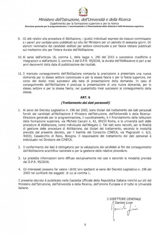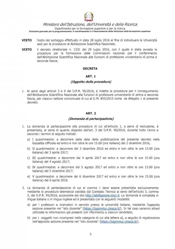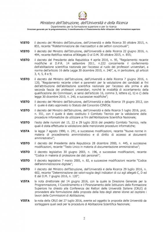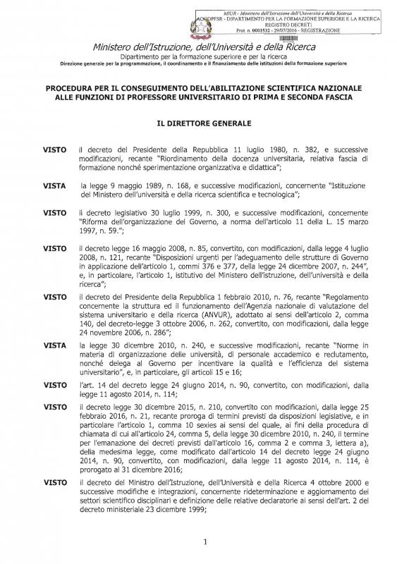 • D.D. MIUR indizione abilitazione scientifica nazionale 2016-2018