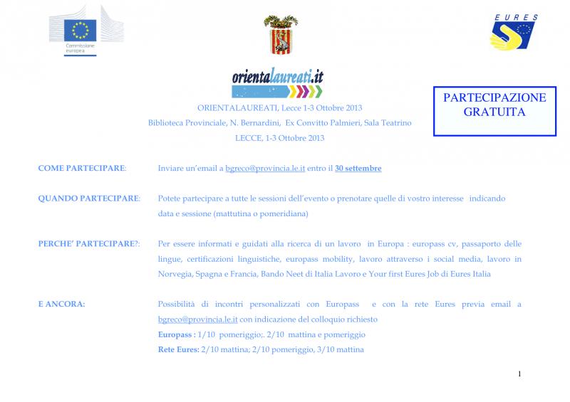 Programma di orienta-laureati rivolto a studenti , laureati, laureandi dottorandi etc..